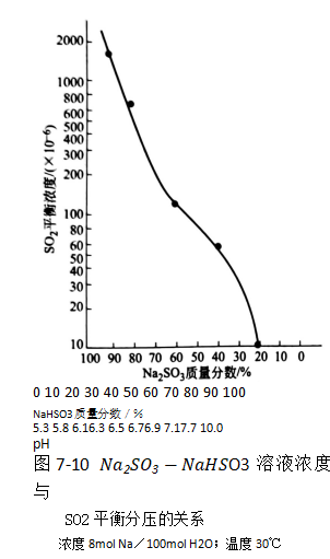 na2so3-NaHso3溶液濃度與SO2平衡分壓關系見圖7-10.
